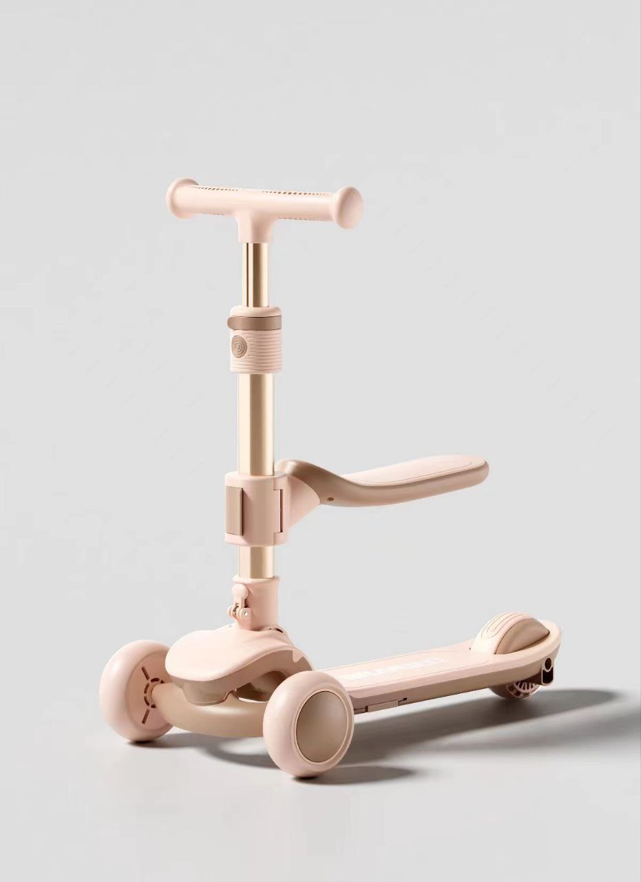 اسکوتر صندلی‌دار کودک یک وسیله‌ی چندکاره و هوشمندانه برای سرگرمی و یادگیری مهارت‌های اولیه حرکتی است. این مدل به کودک امکان می‌دهد هم به صورت نشسته بازی کند و هم به‌مرور با برداشتن صندلی، اسکوترسواری ایستاده را تجربه کند.