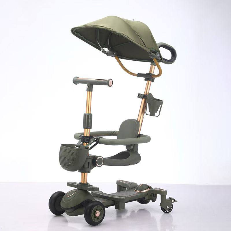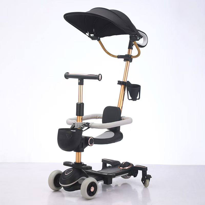 تحت لیسانس دارای کفی پهن دارای صندلی ، حفاظ ، اهرم هدایت و غلطک برای کنترل تاشو مسافرتی دارای و چرخ کمکی